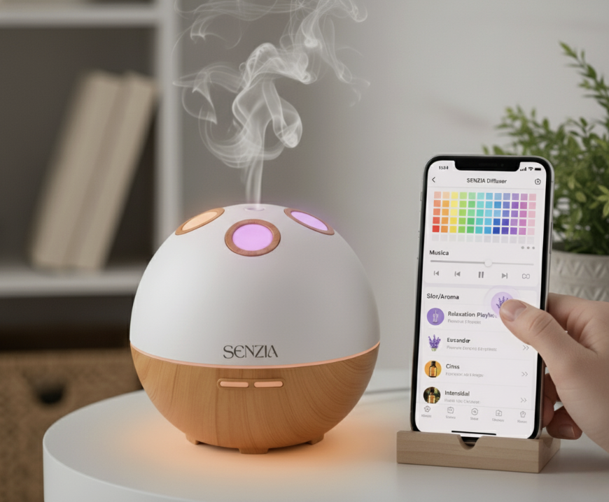 Desde la app Senzia, podrás personalizar tu experiencia al máximo: mezcla aromas según tu estado de ánimo, ajusta la intensidad o deja que el dispositivo cambie automáticamente la fragancia dependiendo del clima o la hora del día.